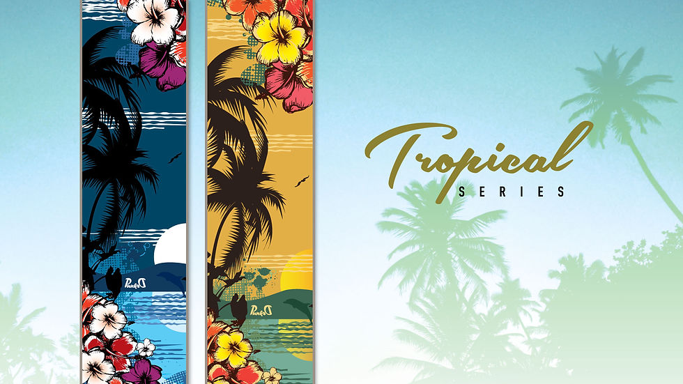 The Tropical series brings out a "vacation vibe" to your longboard. It reflects a feel-good design that comes with either Tropical Day or Tropical Night designs.